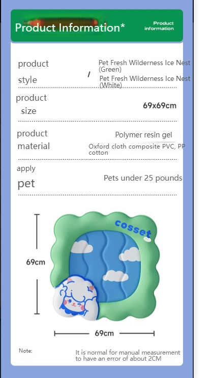 Experience double the coolness with the ChongMie Pet Ice Nest Cooling Mat! Made in China, this PVC mat contains a special resin gel that evenly absorbs heat, providing a physically cooling experience for your pet. Non-toxic and easy to clean, give your furry friend a refreshing summer with this must-have mat.