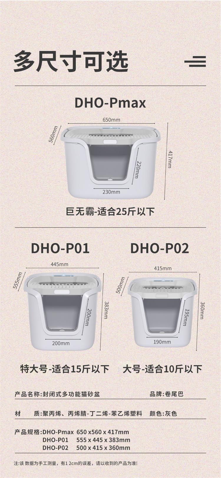 Curly Tail - Extra Large Fully Enclosed Deodorizing and Splash-proof Giant Cat Litter Box Top-Entry for Multiple Cat Families-Make In China