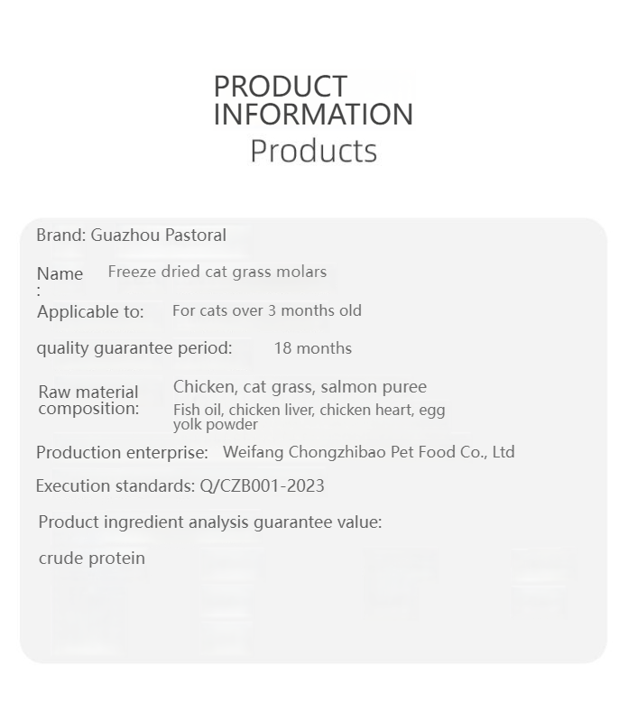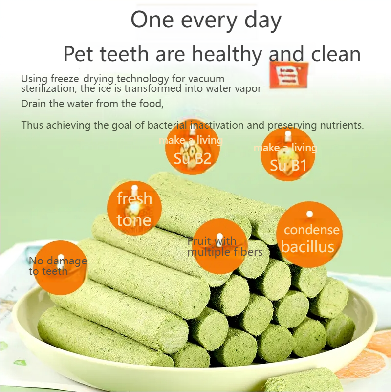Introducing GUAZHOUMU Cat Grass Teething Sticks, the ultimate solution for removing hairballs, gently removing hair, and cleaning teeth in your beloved feline friend. These crispy freeze-dried sticks, made with a combination of cat grass and chicken, offer multiple health benefits including teeth cleaning, hairball prevention, and digestive support. Ideal for pet owners seeking a natural and nutritious alternative to hair-removal pastes. Made in China.