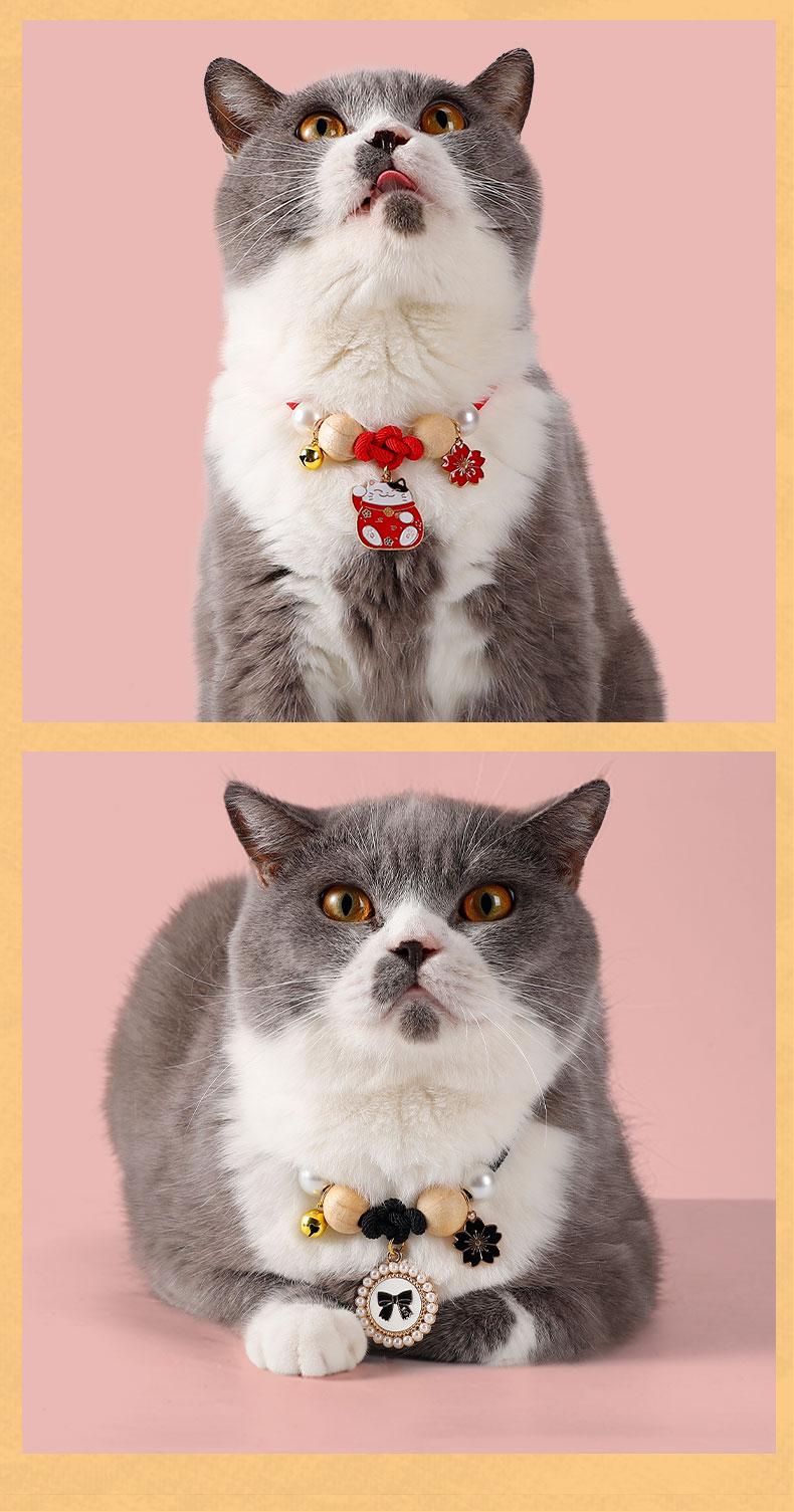 Experience the traditional charm and natural protection of our GUAZHOUMULucky cat pet New Year collar! Made with camphor wood, the handcrafted collar repels fleas and lice while bringing good luck. Its adjustable design ensures a perfect fit for your furry friend. Give your pet the gift of luck and style this Year!