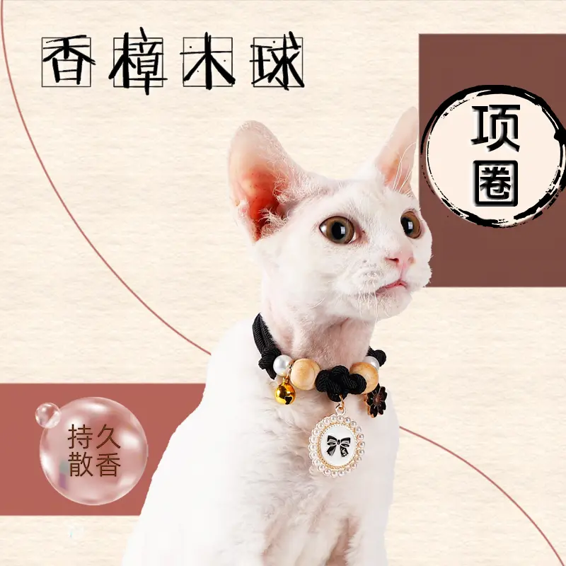 GUAZHOUMULucky cat pet 2025 collar cat collar cat bell camphor wood natural external insect repellent flea and lice-Make In China