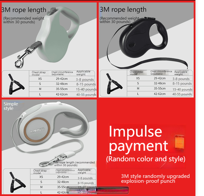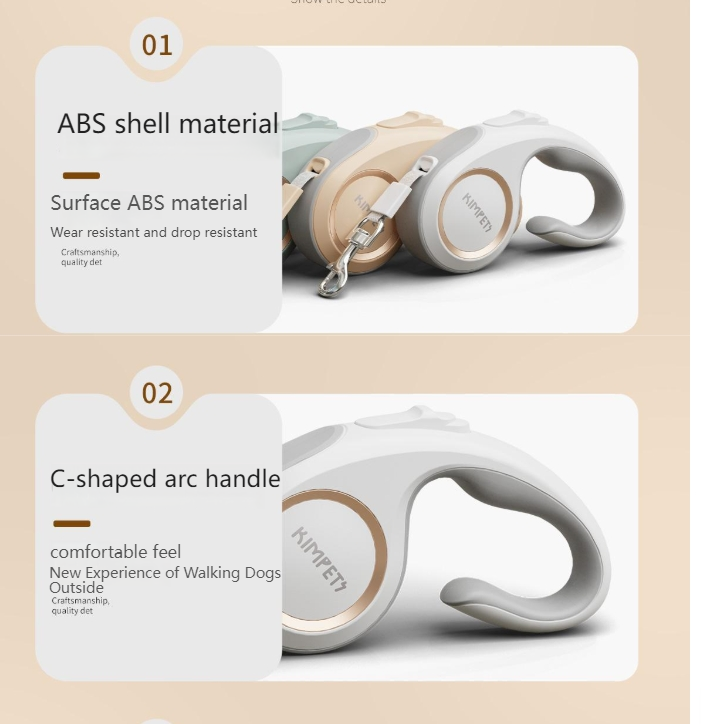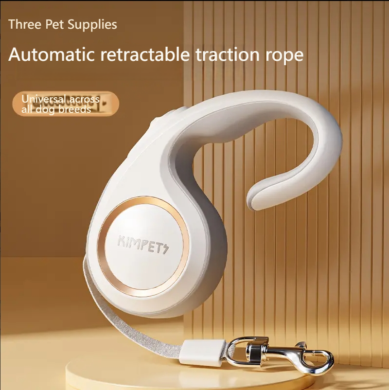 Take your dog for a walk with ease and style using the Kimpets Dog Traction Rope. This retractable rope features a convenient push button locking mechanism, automatic retraction, and a flexible design with a metal snap hook. With a 5m stretch length and a sleek U-shaped rope outlet, it's perfect for small, medium, and even large dogs. Made in China for quality and durability.