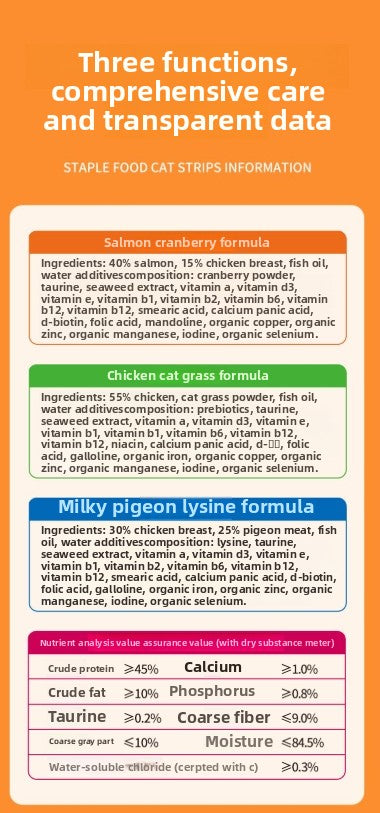 Boost your cat's overall health with our Main Food Cat Food! Made in China, our moisturizing wet food is enriched with chicken, fish, and meat flavors, catering to your young cat's different nutritional needs. Nurture their stomach and urinary health with our nourishing and interactive canned food!