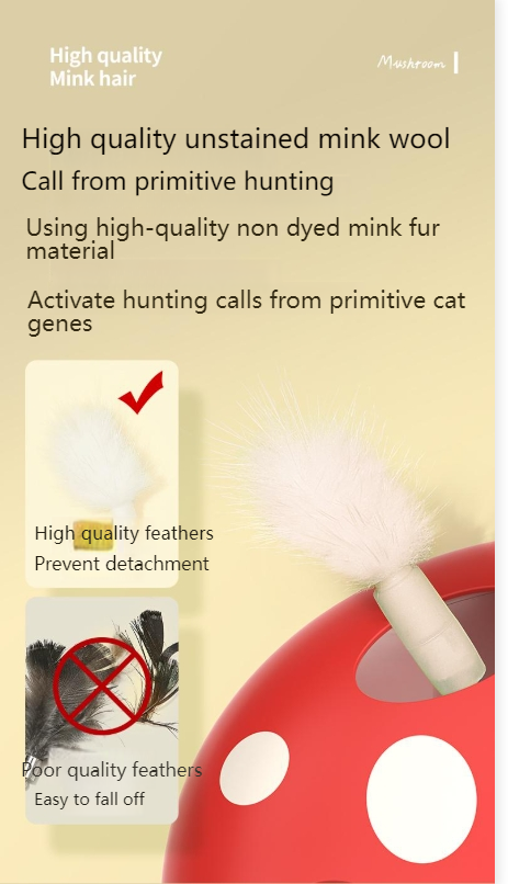 Keep your kitty entertained and mentally stimulated with the PAKEWAY Mushroom cat toy. The high-quality soft fur and infrared sensor create a realistic hunting experience, while the rotating wand and safe design provide hours of fun. Say goodbye to guilt over busy schedules, your cat deserves the best!