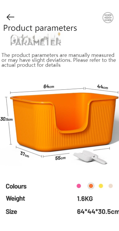 隆重推出我们的大型猫砂盆,尺寸为 65x45x33 厘米,入口高 13 厘米,方便取用。这款猫砂盆坚固耐用,经久耐用,并采用深层结构,防止猫砂四处飞散,为您的宠物提供私密安全感。无需再担心猫砂四处飞扬,享受我们宽敞的猫砂盆带来的便利和安心!