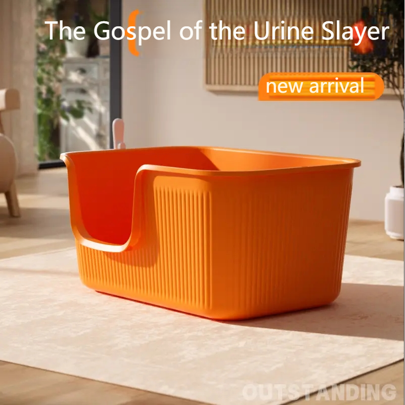 PANSIJI The second generation upgraded super large semi-enclosed vertical pattern cat litter box is splash-proof and easy to clean for big cats and Maine cats